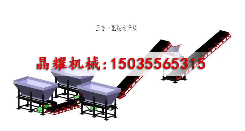 簡單的機(jī)械化配煤生產(chǎn)線的工藝流程:用裝載機(jī)將不同性質(zhì)的單種原料煤裝入不同的貯煤斗,通過圓盤給料機(jī)或箱式給煤機(jī)出煤閘門的調(diào)節(jié),控制各單種原料煤出煤量的大小,不同的煤經(jīng)滾筒篩或振動篩等篩分設(shè)備進(jìn)行篩分和混配,篩下物成為動力配煤,篩上物經(jīng)粉碎后摻入動力配煤中,然后作為成品貯存或外運。一般中小型配煤場常用這種簡單的工藝流程。